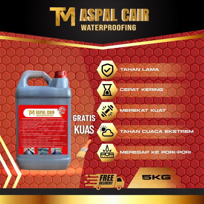 Promo Aspal Cair 5kg – Cat Pelapis Anti Bocor Dak Beton Genteng Tembok Luar Waterproof Keren