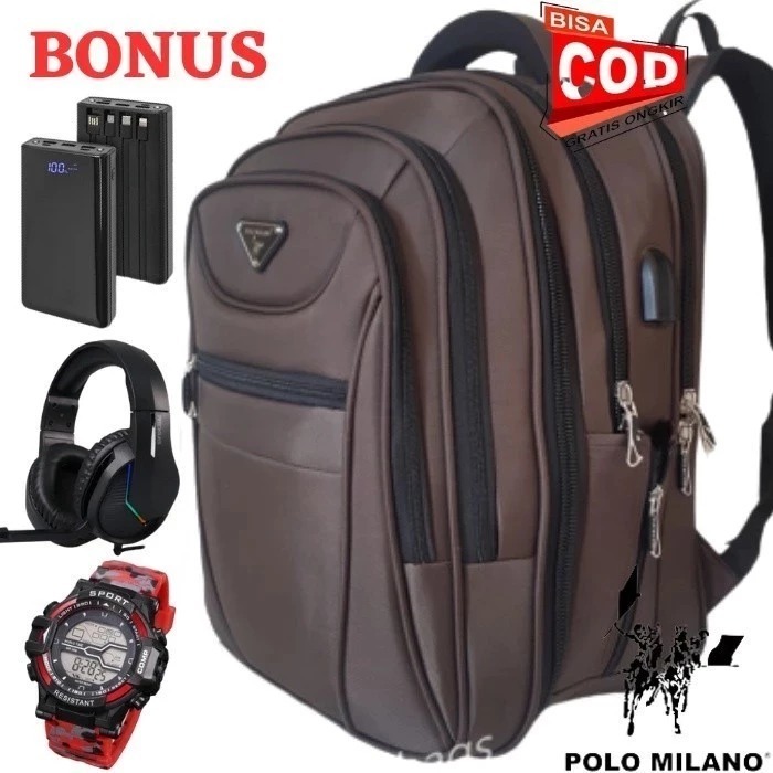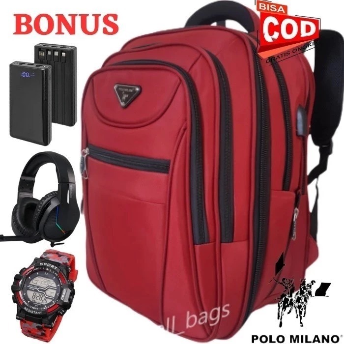 ( FREE 3 HADIAH )Tas Ransel Polo Milano 88372 Tas Ransel Polo Dewasa Terbaru 2023 (TPH) Tas Polo Hitam Tas Kerja Tas Tra