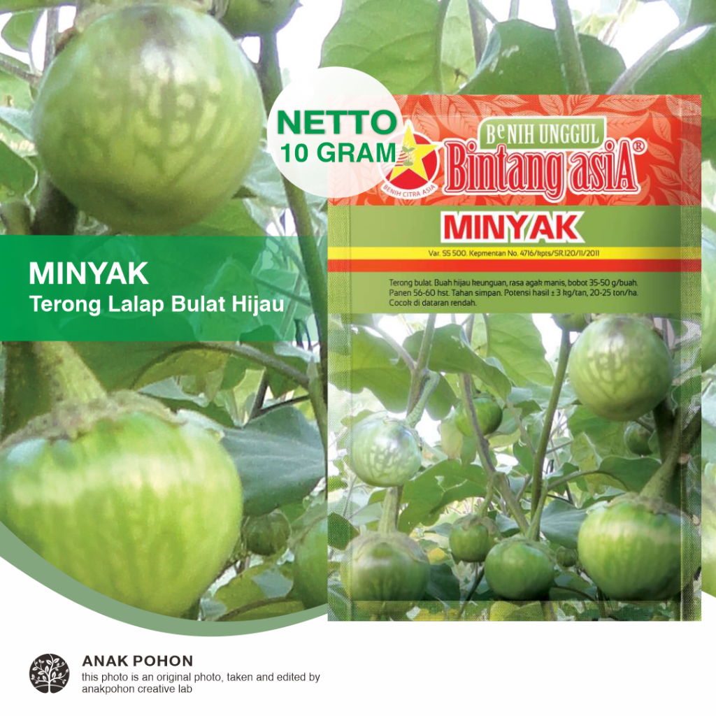 (1 PACK) Benih Terong Lalab MINYAK Bulat Hijau Berlurik Terung Lalapan Seeds - Bintang Asia - 10 GRAM