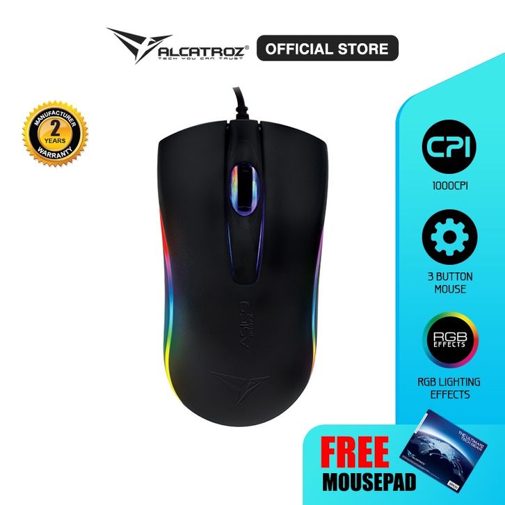 TERBARU Mouse Gaming Alcatroz Asic 9 RGB Wired USB Mouse With RGB FX | 1000 CPI High Resolution Optical Mouse [ 2