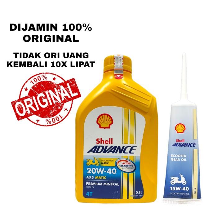 PAKET OLI MATIC SHELL ADVANCE AX5 SCOOTER 0.8L 20W40 + SHELL OLI GEAR