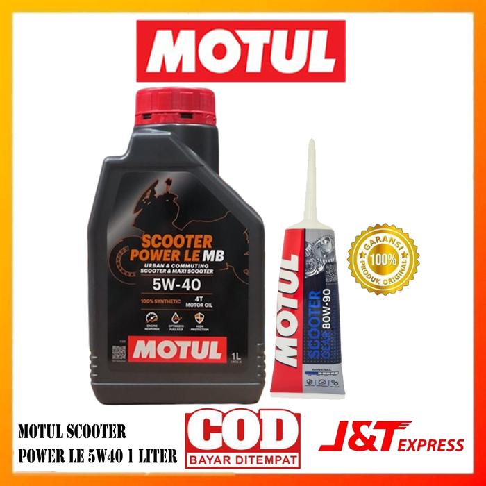 Paket 2 IN 1 Motul Scooter Power LE 5W40 1L 800ml + Oli Gardan Motul 80W90 Synthetic 120ml Mesin Motorcycle Oil