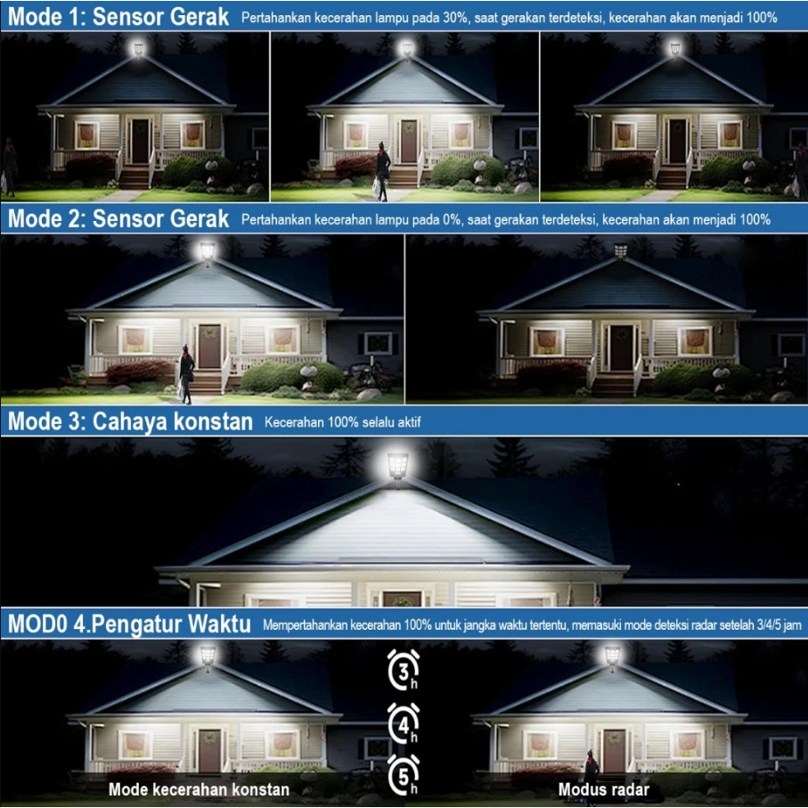 IRONHOOF lampu tenaga surya outdoor 1500W lampu solar cell lampu outdoor IP67 Tahan air LED Lampu sorot Emergency Super