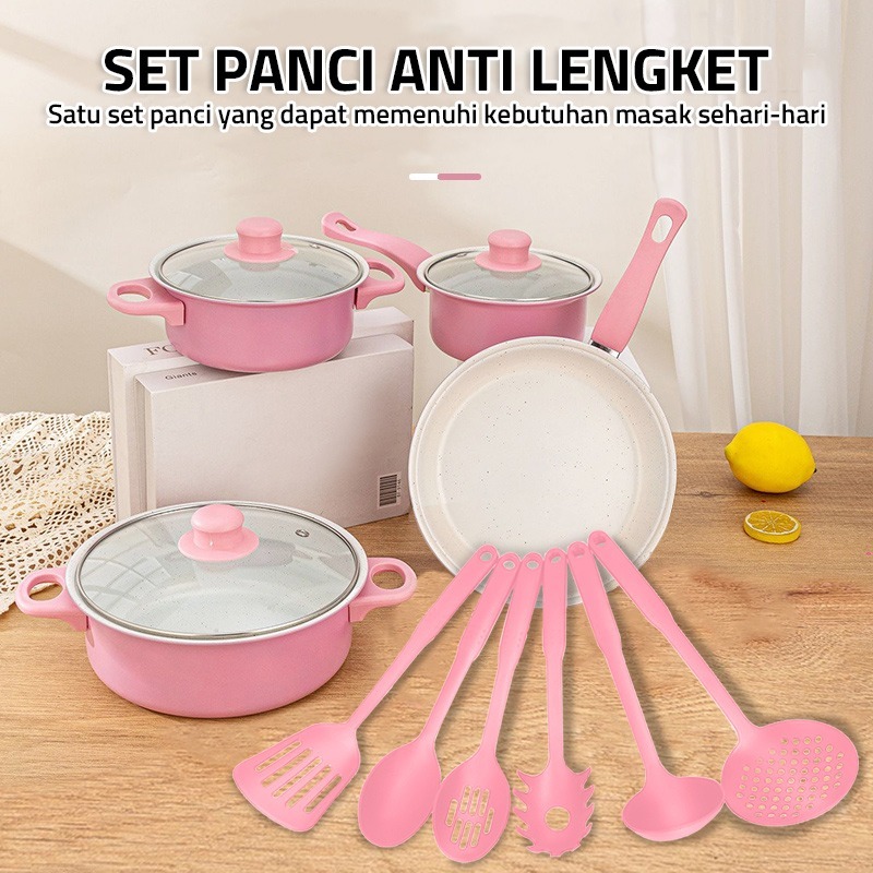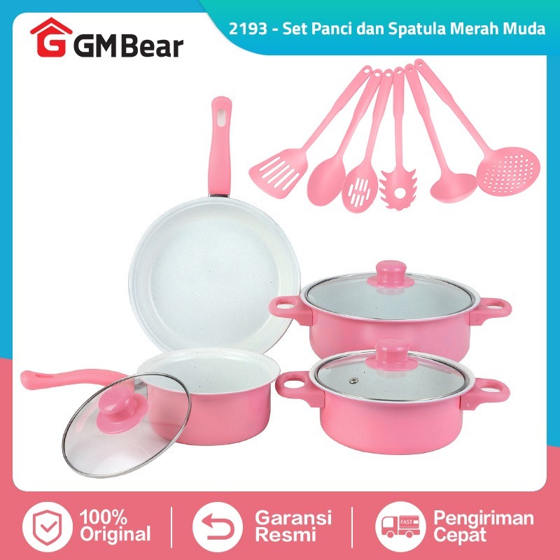 GM Bear Set Panci dan Spatula Merah Muda 2193 - Wajan Penggorengan Spatula Set Frypan Saucepan