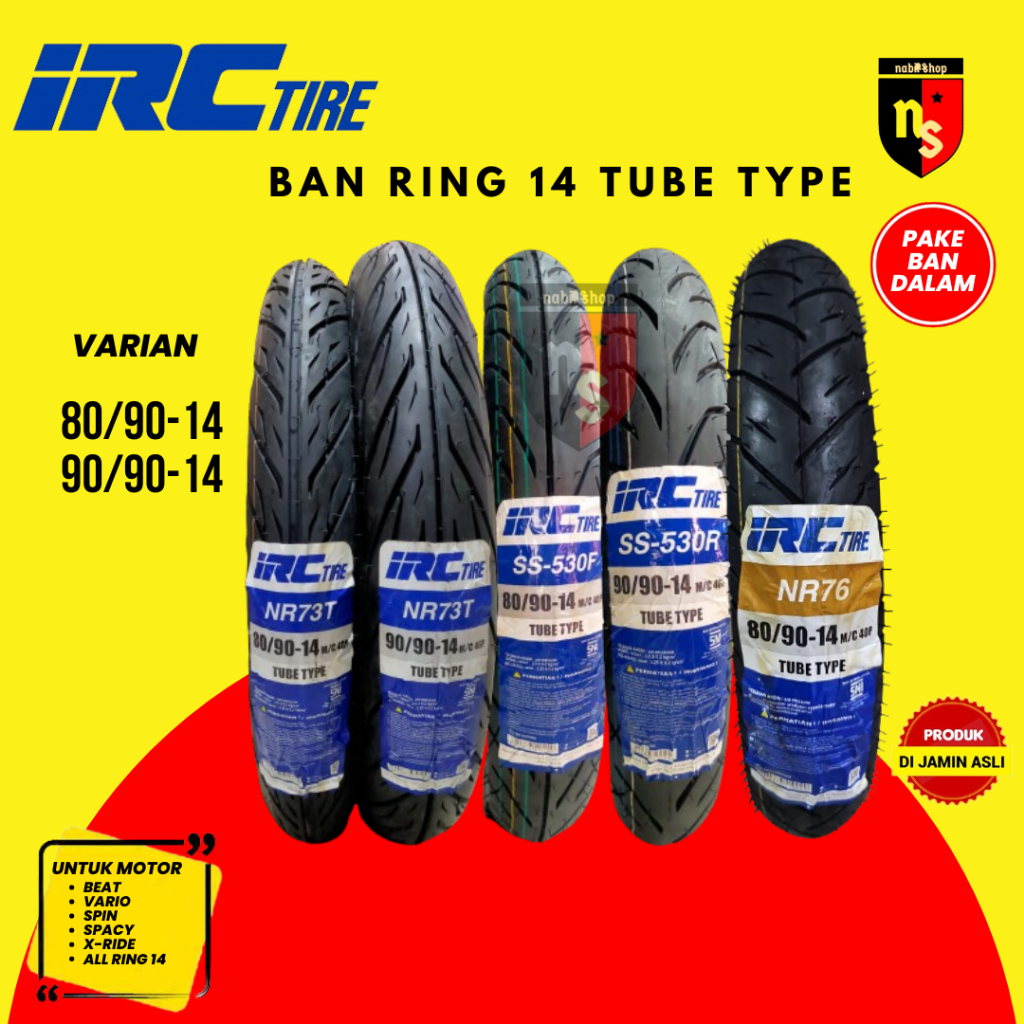 Irc Nr73 80/90 90/90 Ring 14 Tubetype Untuk Beat Vario Mio Soul Nex Spin