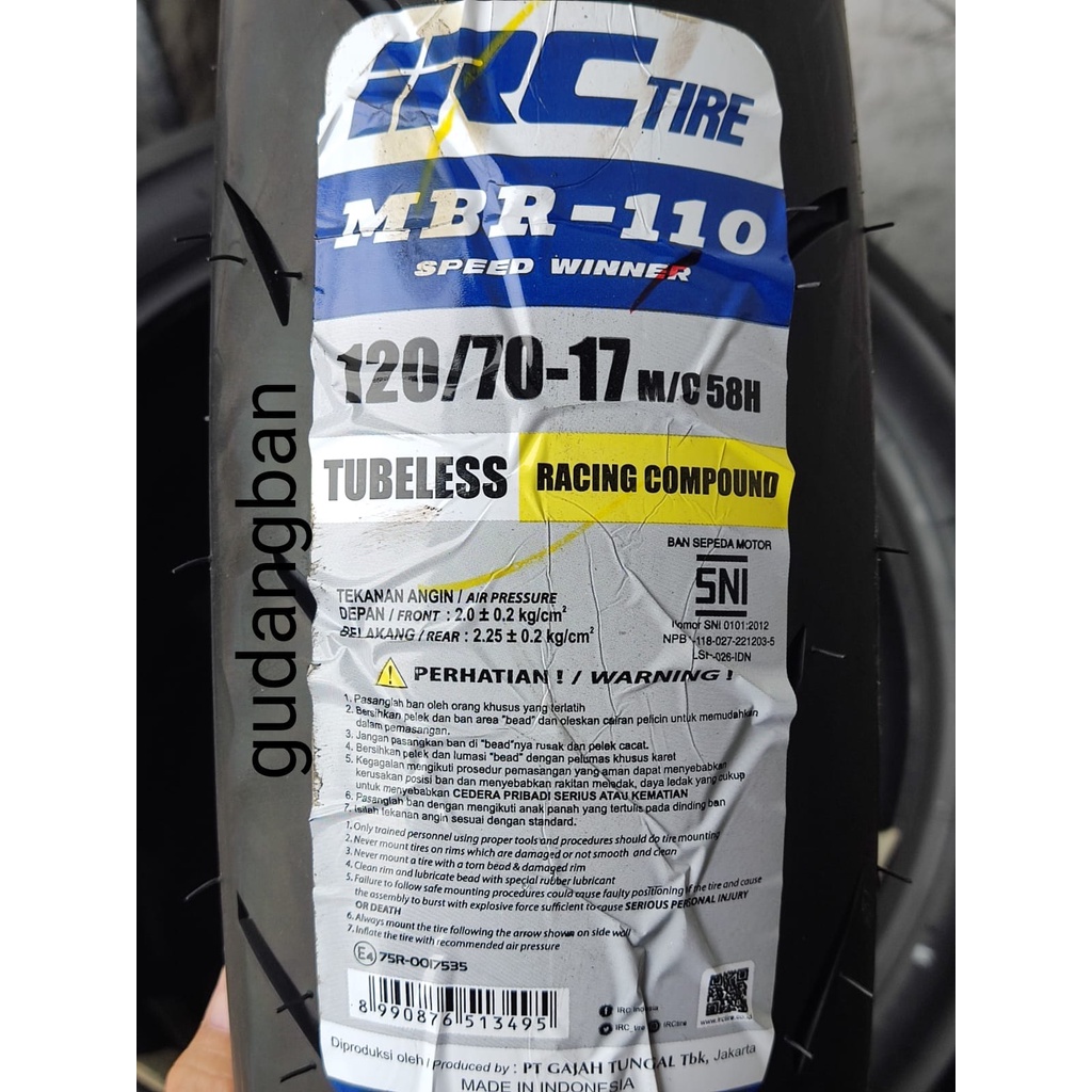 Irc Mbr110 Ukuran 120 70 17 Speed Winner Soft Compound Ban Motor Tubeless Balap Sport Free Pentil