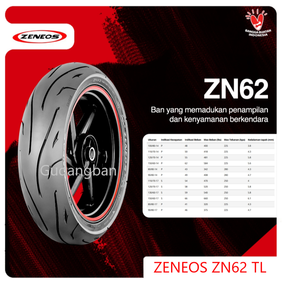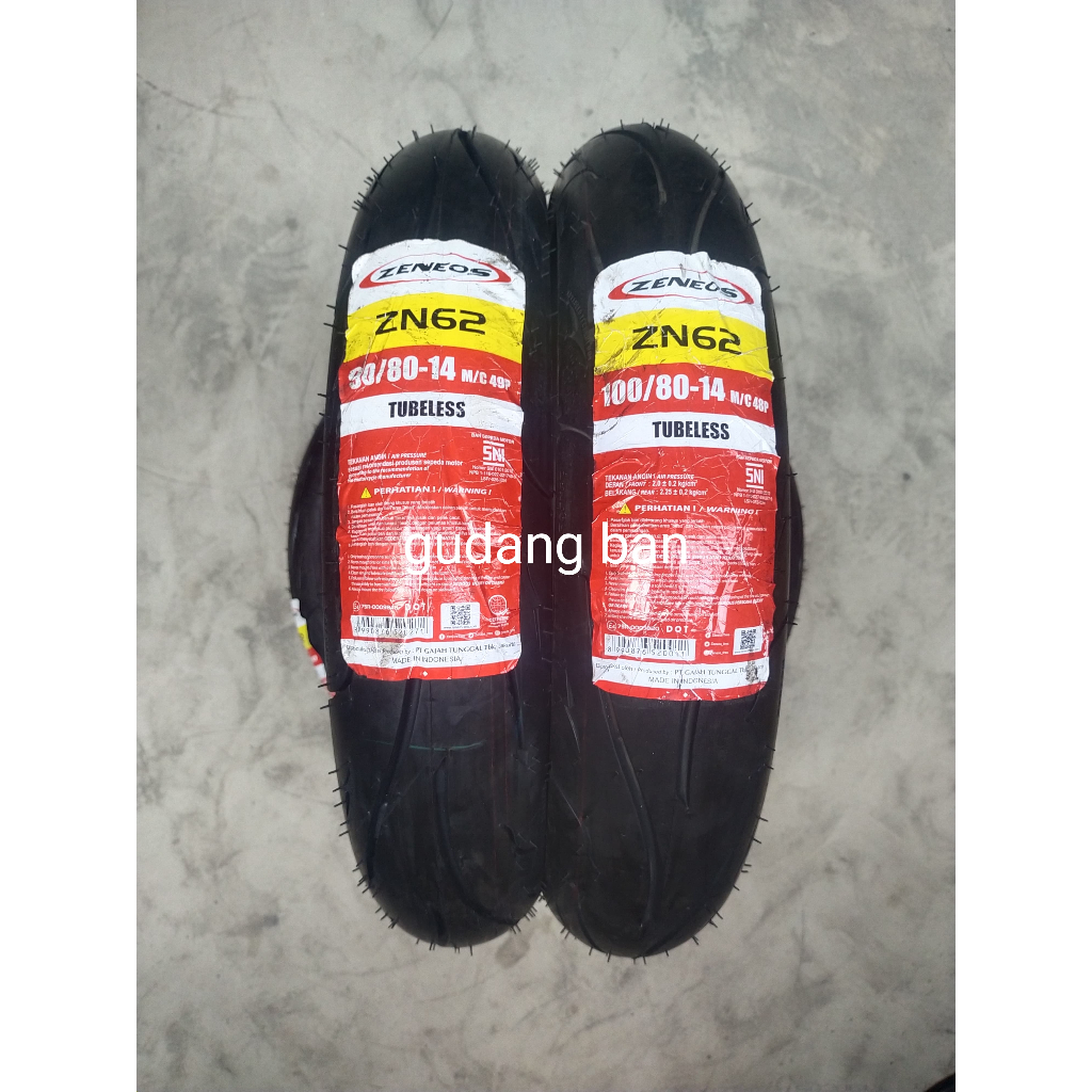 ( Paket 2 Ban -Ring 14) Zn62 90 / 80 - 14 & 100 / 80 - 14 Zeneos Zn 62 Matic Tubeless Free Pentil