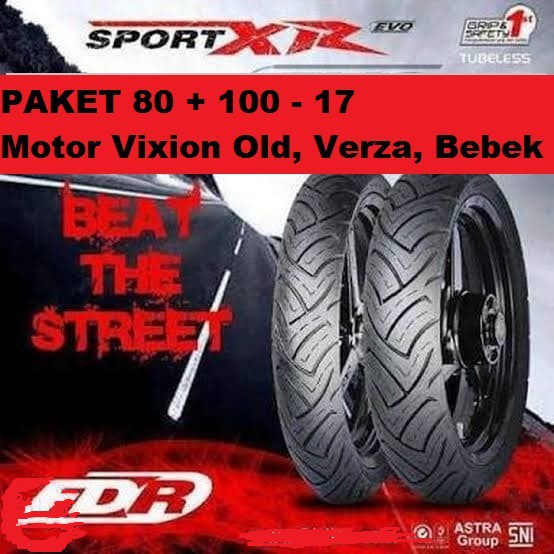Paket Sepasang Fdr Sport Xr Evo 80/80 & 100/80 - 17 Ban Motor Vixion Old Verza Supra Vega Satria Fu