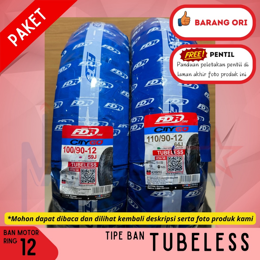 Fdr Paket Ban Motor City Go 100/90-12 & 110/90-12 Tubeless (Tl) Motor Metic