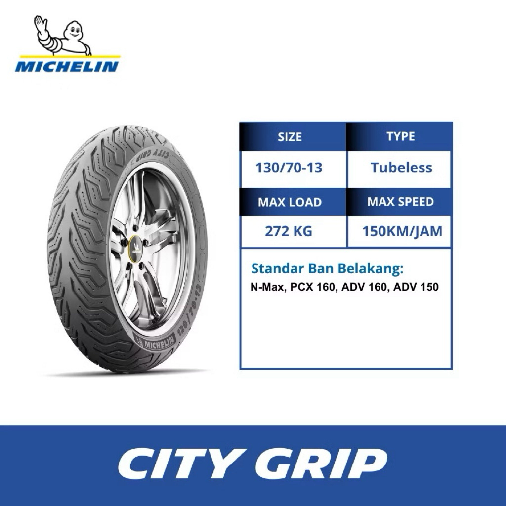 Ban Motor Michelin 130/70-13 Ring 13 ( City Grip ) Free Pentil Ban Pcx Adv Nmax Tubeless Original