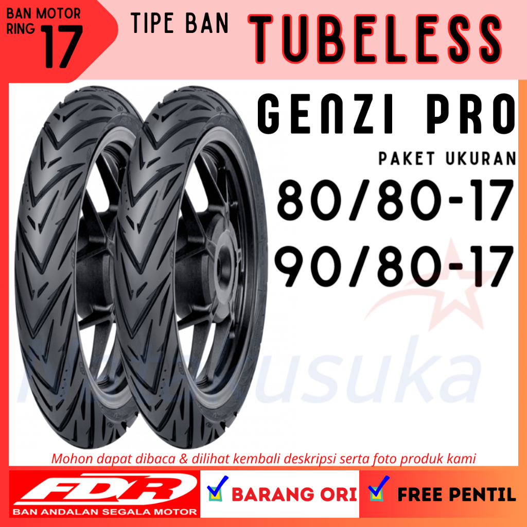 Fdr Paket Ban Motor Genzi Pro 80/80-17 & 90/80-17 Tubeless (Tl) Motor Bebek