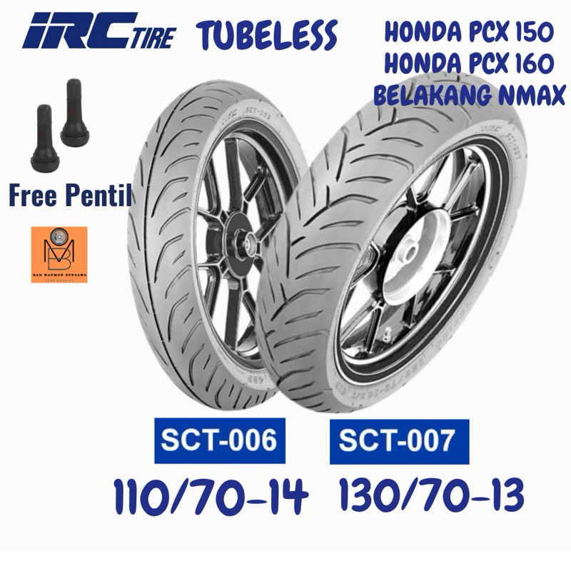 Paket Ban Motor Honda Pcx 160 / Irc Sct006 110/70 Ring14 & Sct007 130/70 Ring13 Tubeless Free Pentil Tahun 2025