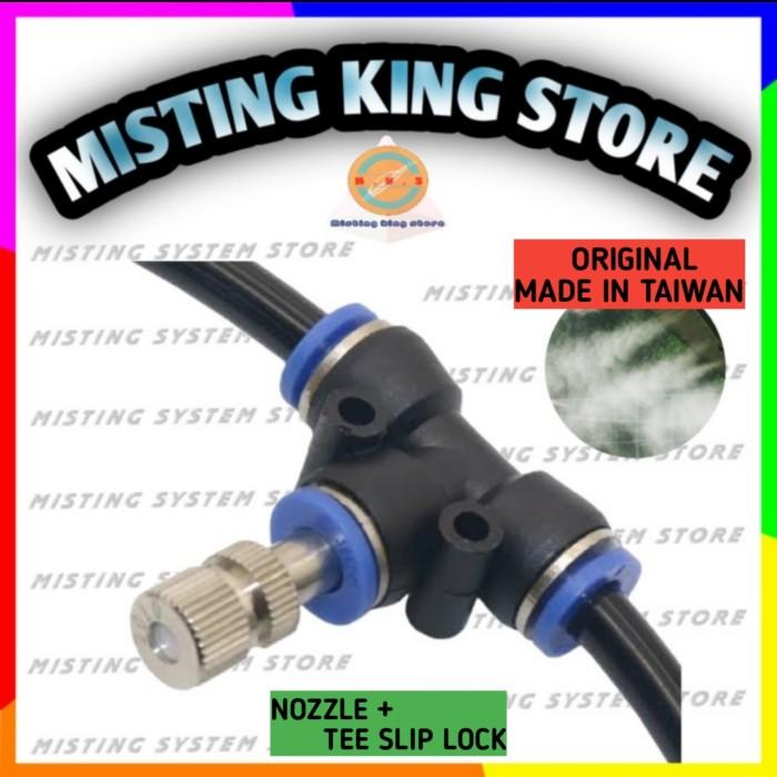 BEST PRODUK ! MIST NOZZLE 0.15 MM MISTING KING FOGGER + SLIP LOCK TEE 6MM PNEUMATIC - SPESIFIKASI ORI