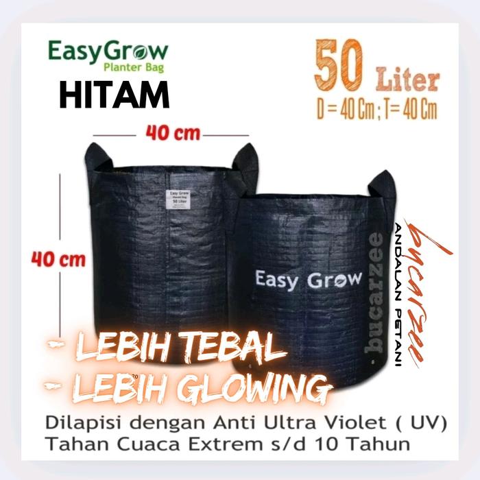 BEST PRODUK ! EASY GROW PLANTER BAG HITAM 50 LITER. BAHAN TEBAL BULAT ROUND BOTTOM ORI