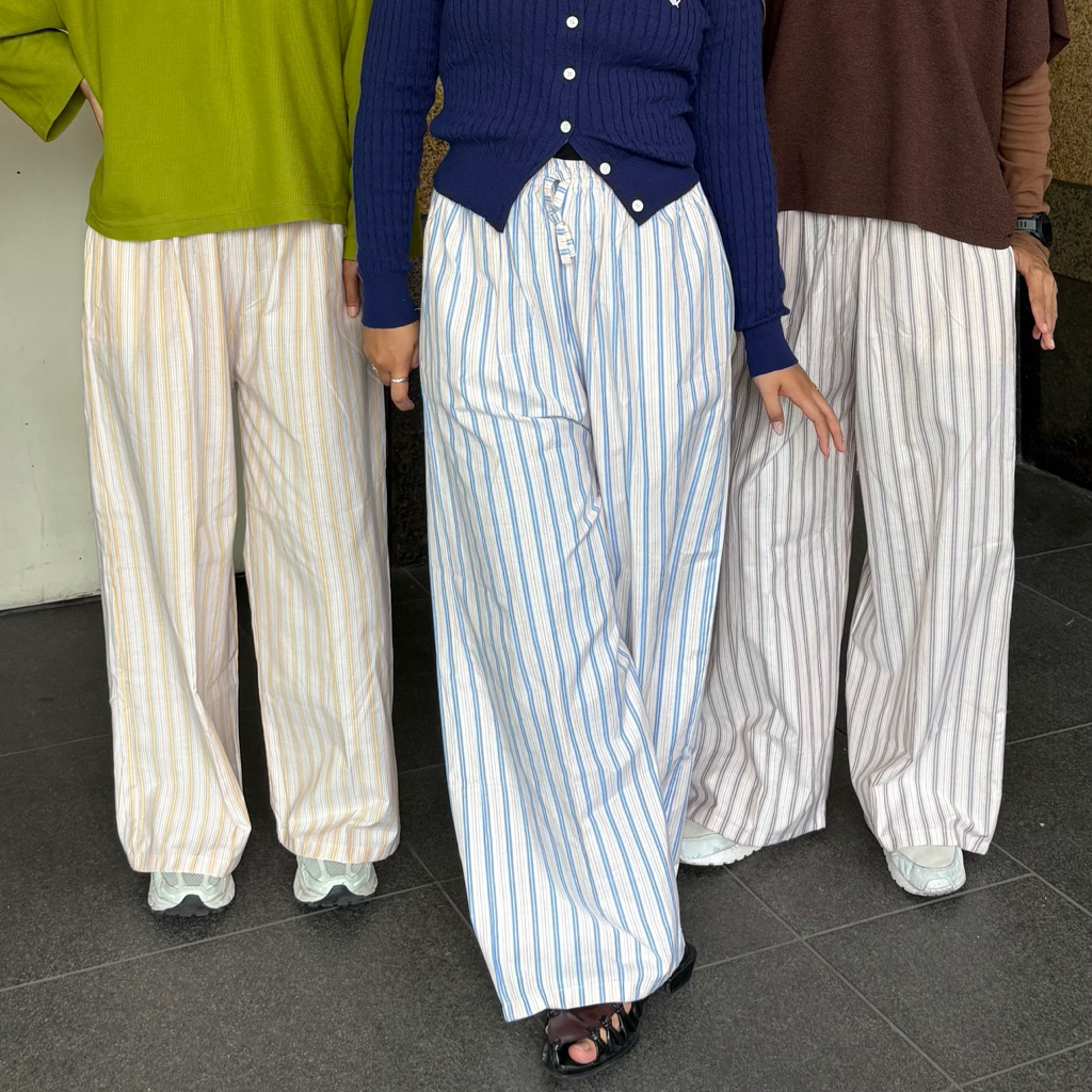 Inioke - Gian Pants -Celana Kulot Salur - Celana Panjang Stripe - Loose Pants Stripe - Celana Pantai - Celana Warna Warn