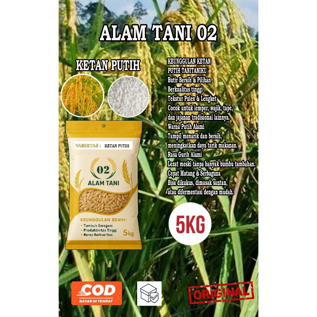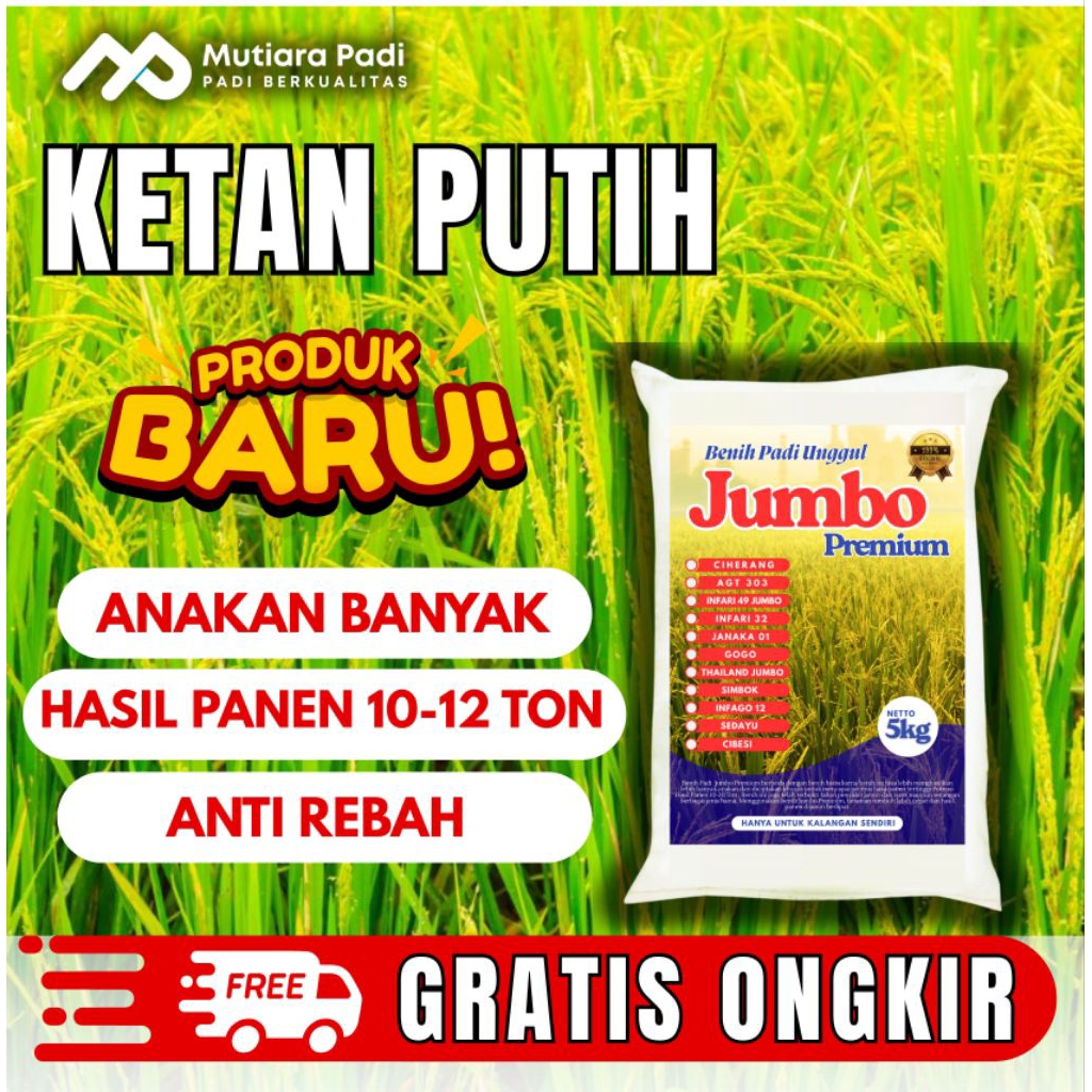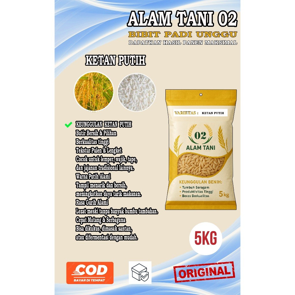 BENIH PADI BIBIT PADI KETAN PUTIH BERKUALITAS KEMASAN 5 KG