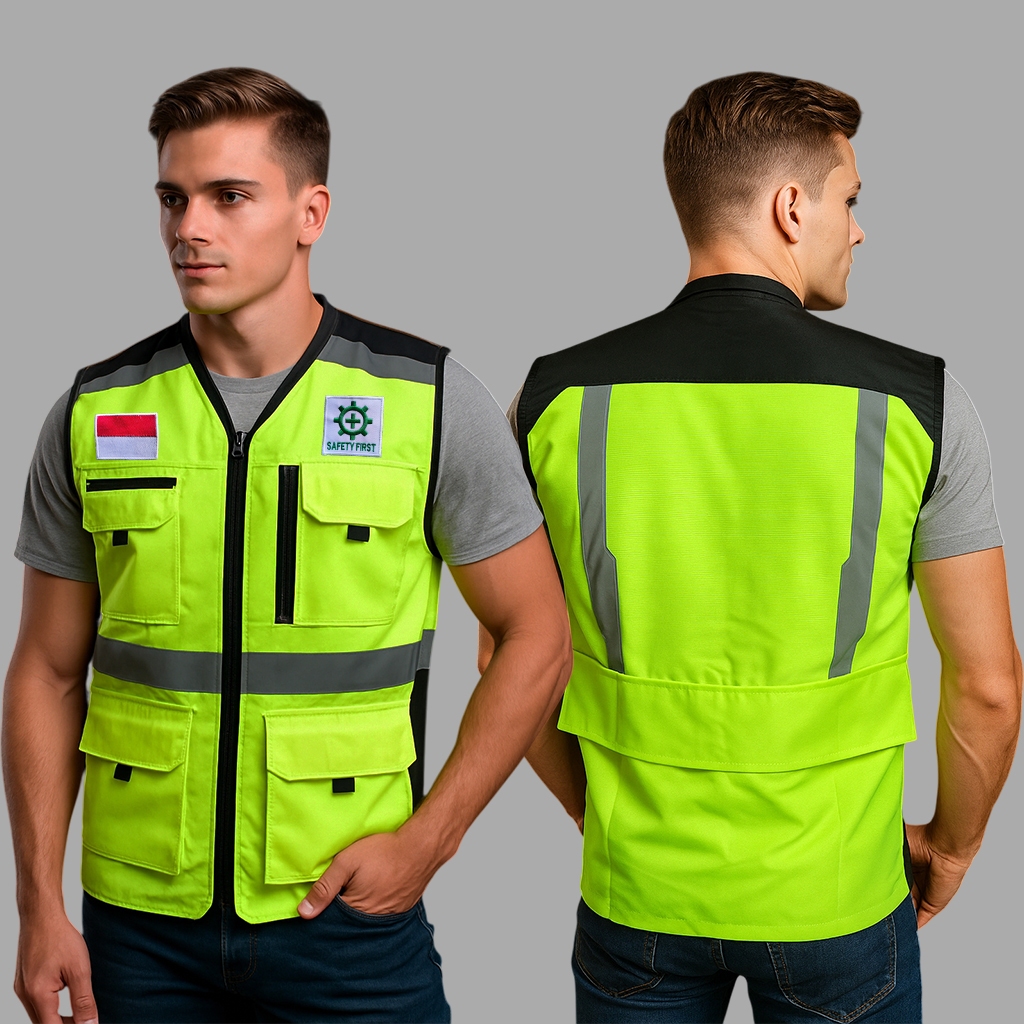 Anti Air - Rompi Safety First Proyek K3 Bahan Taslan Waterproof Untuk Pekerjaan Umum Terbaru