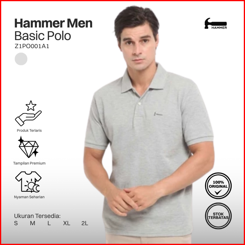 Hammer Men Basic Polo Z1po001a1 Kaos Kerah Pria Lengan Pendek Grey