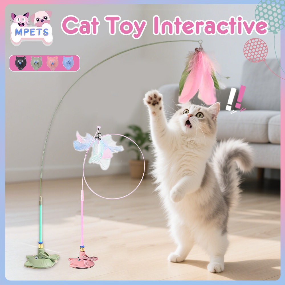 Mainan Bulu Tongkat Lentur Bisa Di Lepas Pasang Untuk Kucing Anjing Dengan Suction Cup Cat Teaser Stick