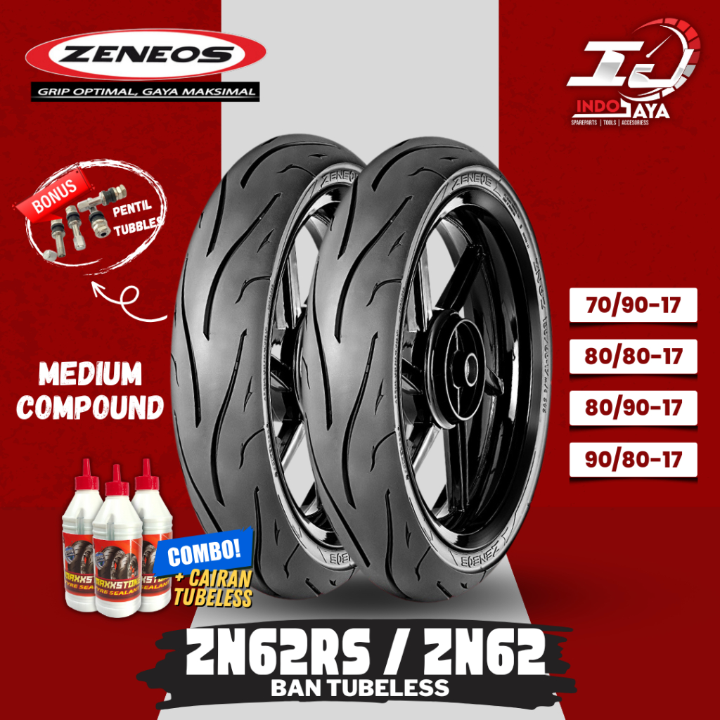 Ban Luar Tubeless Zeneos Zn62 (70/90-17 - 80/80-17 - 80/90-17 - 90/80-17) Ban Bebek / Ban Depan Belakang Motor