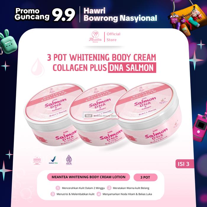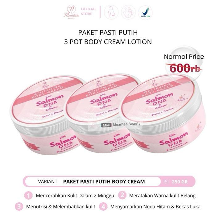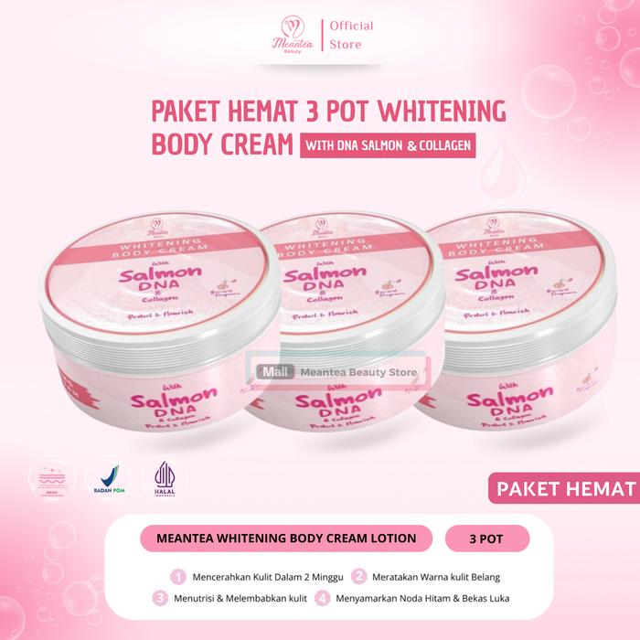 Paket Hemat 3 Pot Whitening Body Cream Dna Salmon Plus Collagen 250 Gr By Meantea Beauty Pemutih Dna Salmon Ori Bpom Lo