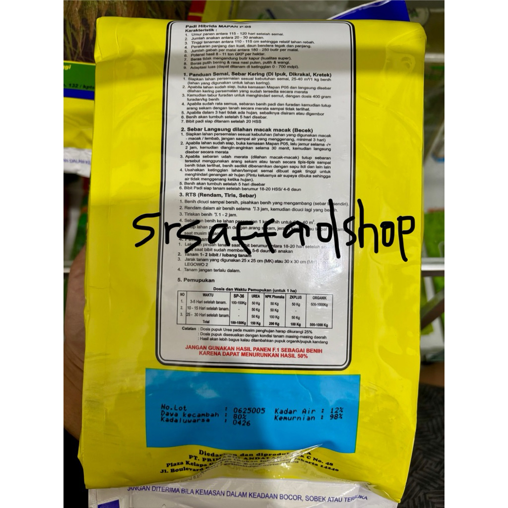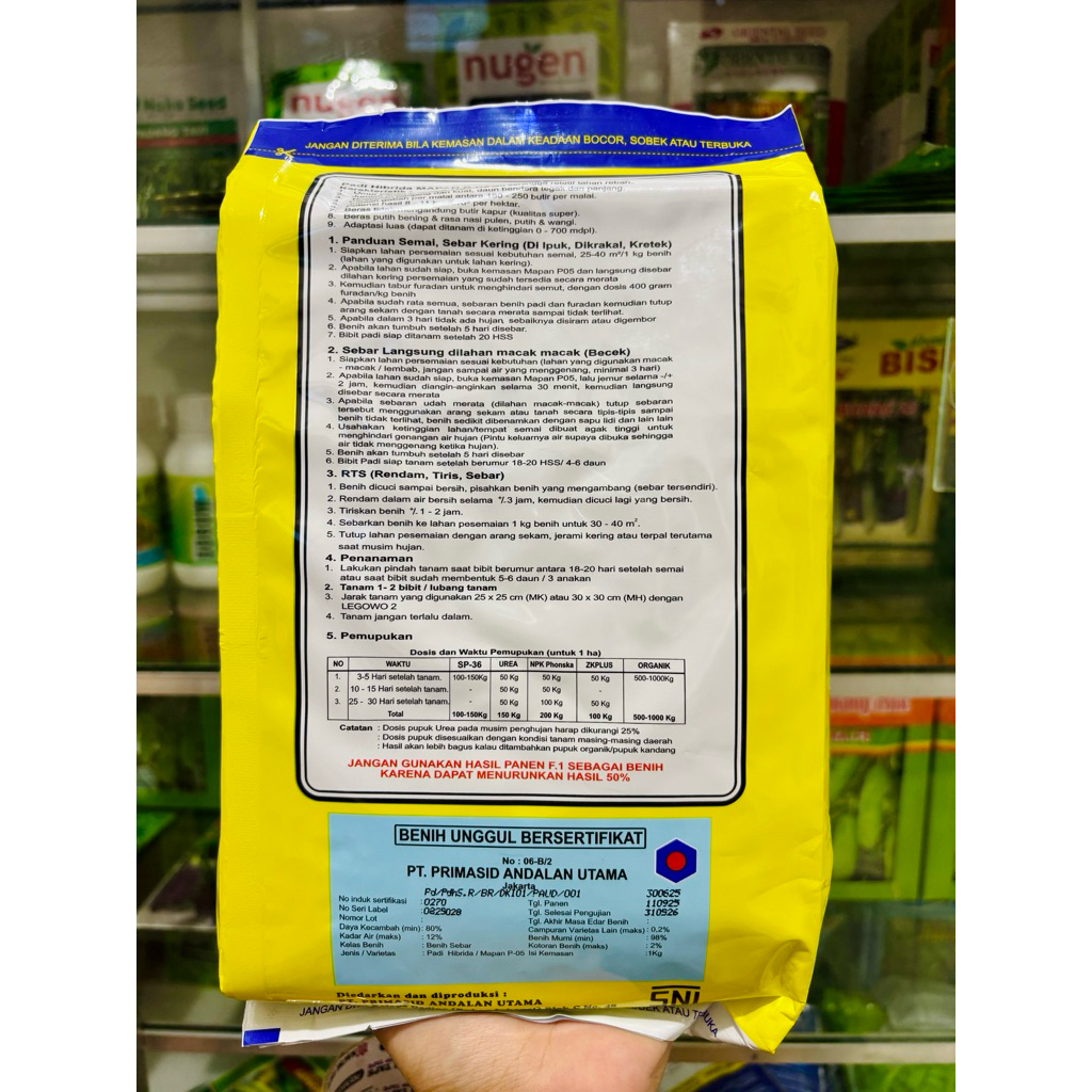 Benih Bibit Padi Hibrida F-1 MAPAN P- 05 PRIMASID 1Kg 100% Original Kemasan Pabrik Exp 2026
