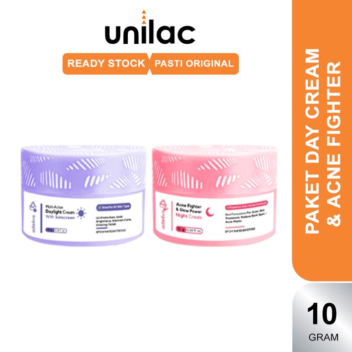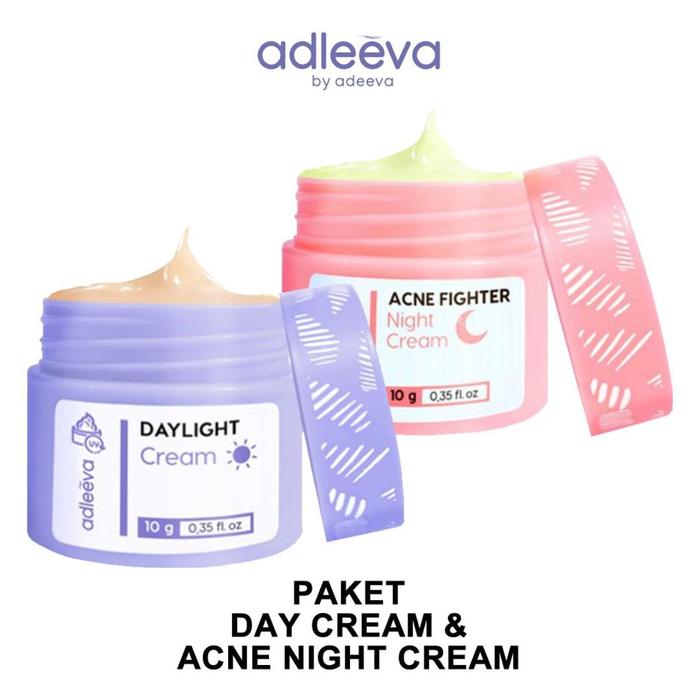 Adleeva Paket Cream Daylight Cream & Acne Fighter Night Cream - Adleeva By Adeeva Krim Siang & Malam - Paket Sunglow & A