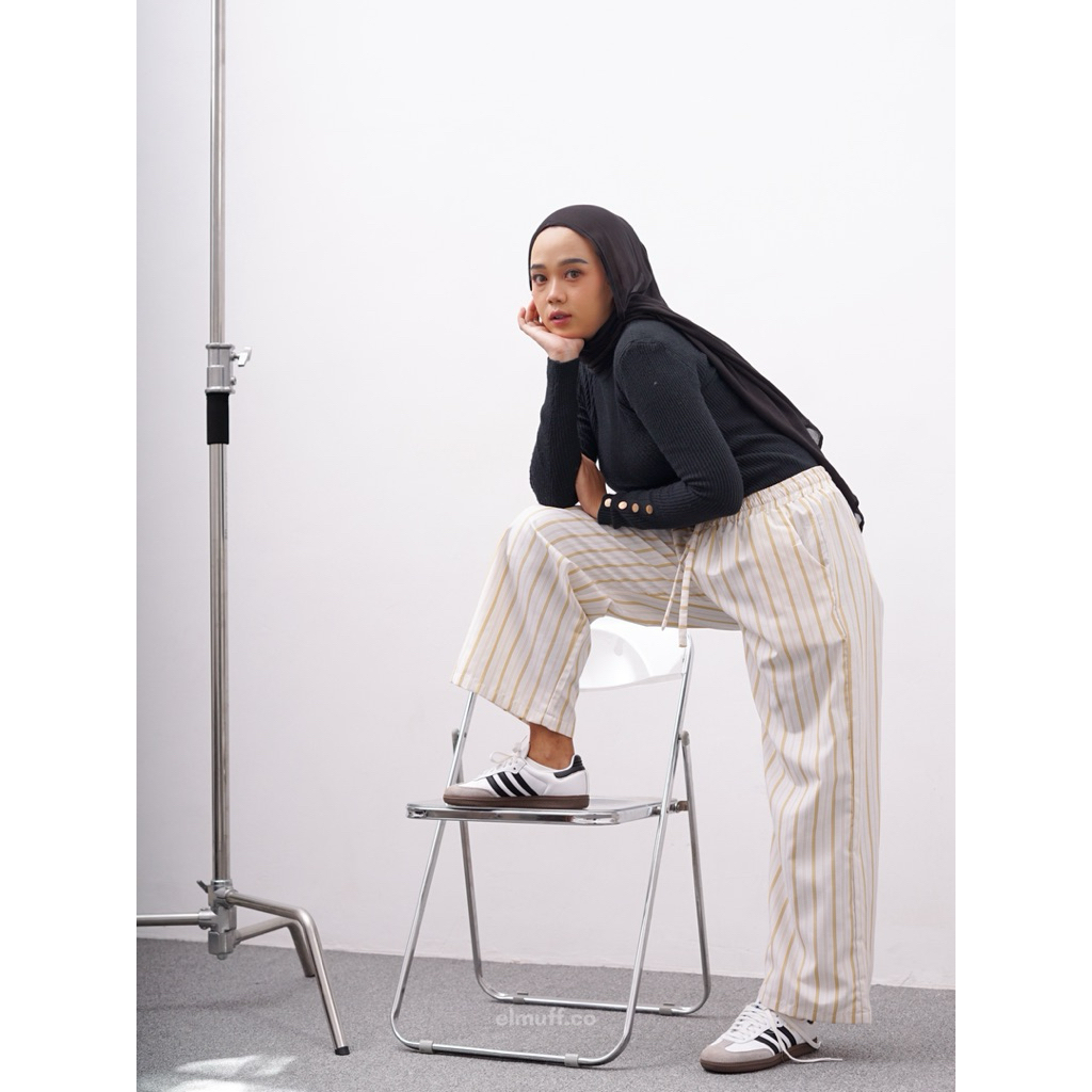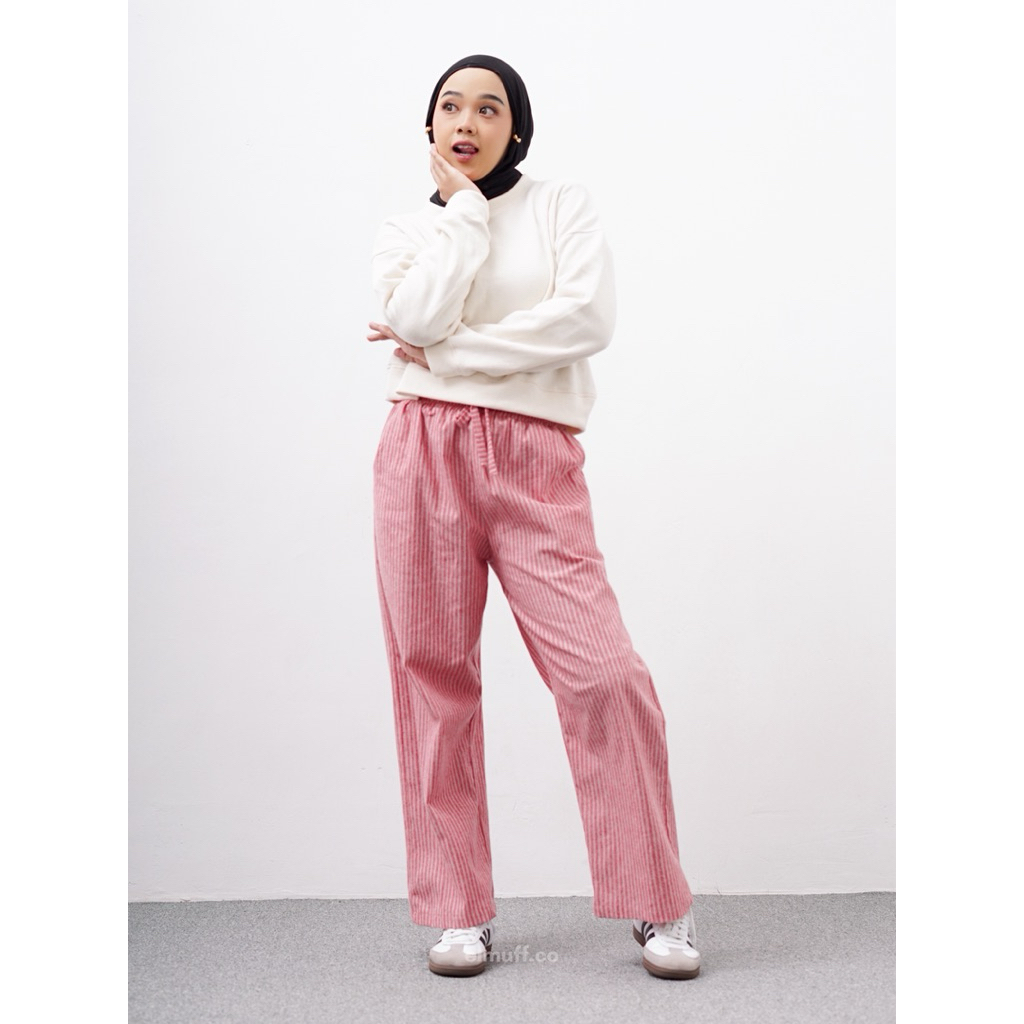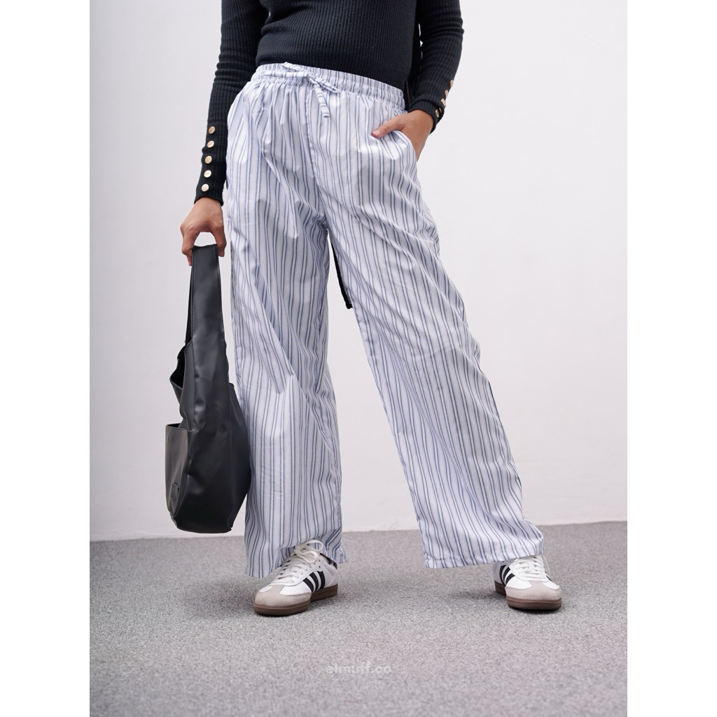Elmuff / Celana Stripe Salur Wanita / Celana Kulot Stripe / Dinta Pants