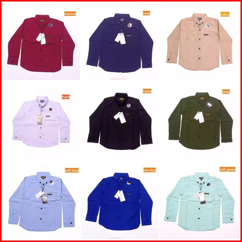 Kemeja Anak Laki-laki Lengan Panjang Polos Usia 1-10 Tahun Import