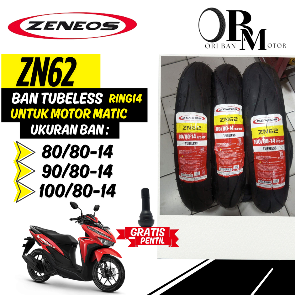 Ban Motor Matic Zeneos Zn62 Ring14 Tubeless Medium Compound Untuk Motor Vario,Beat,Mio, Dll