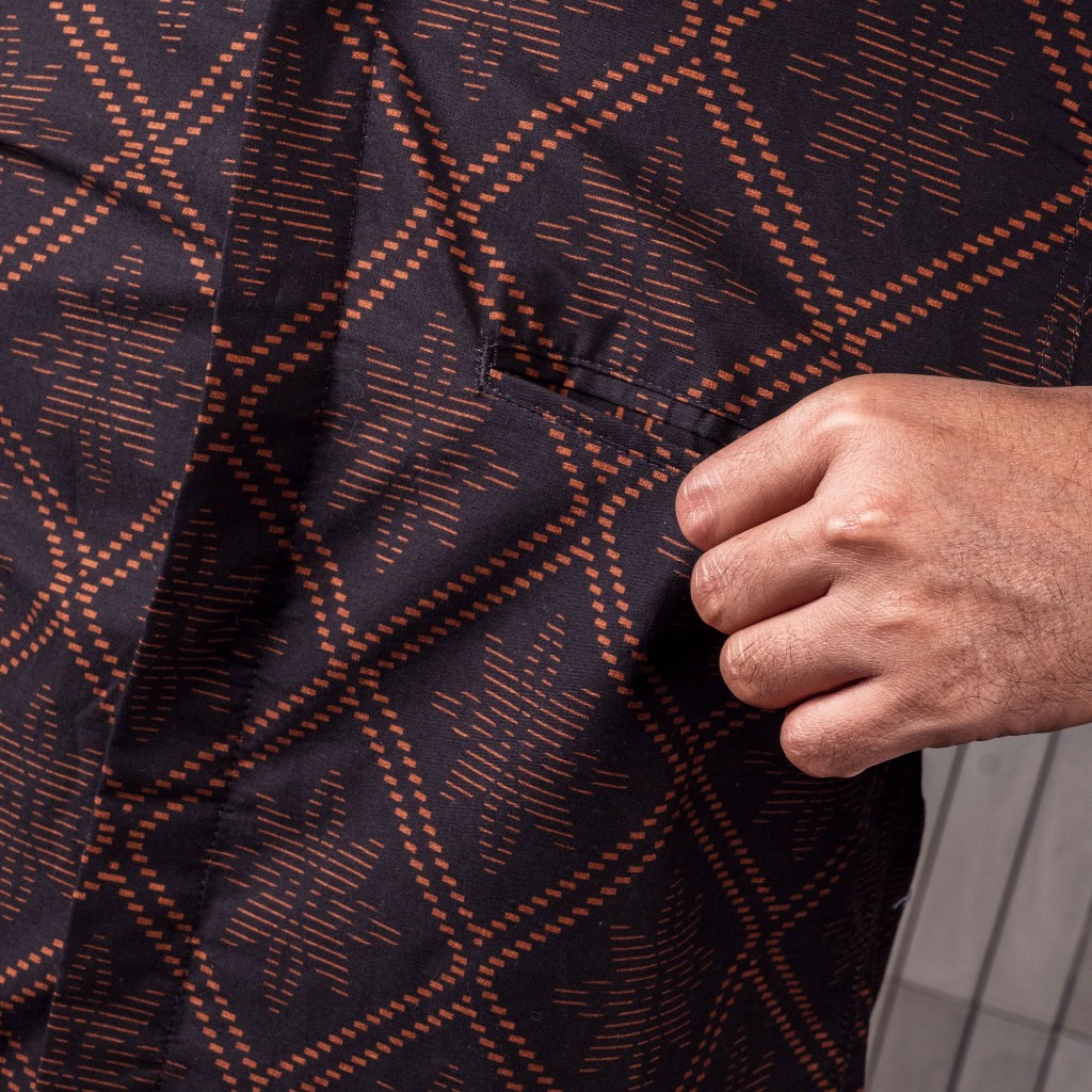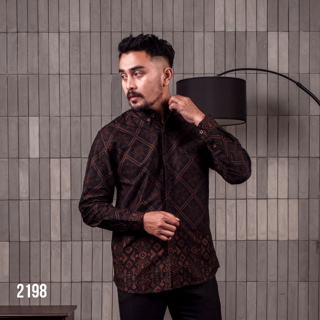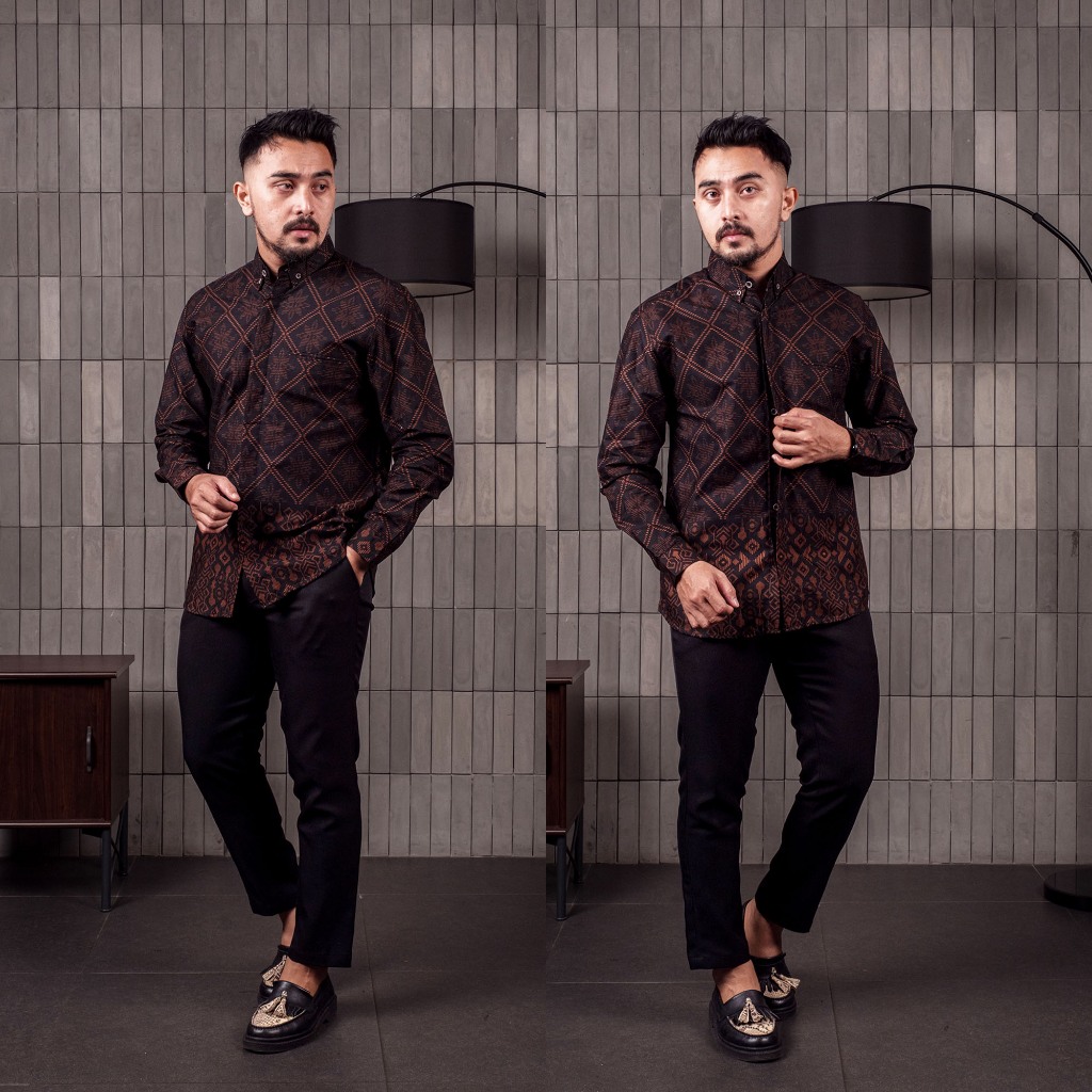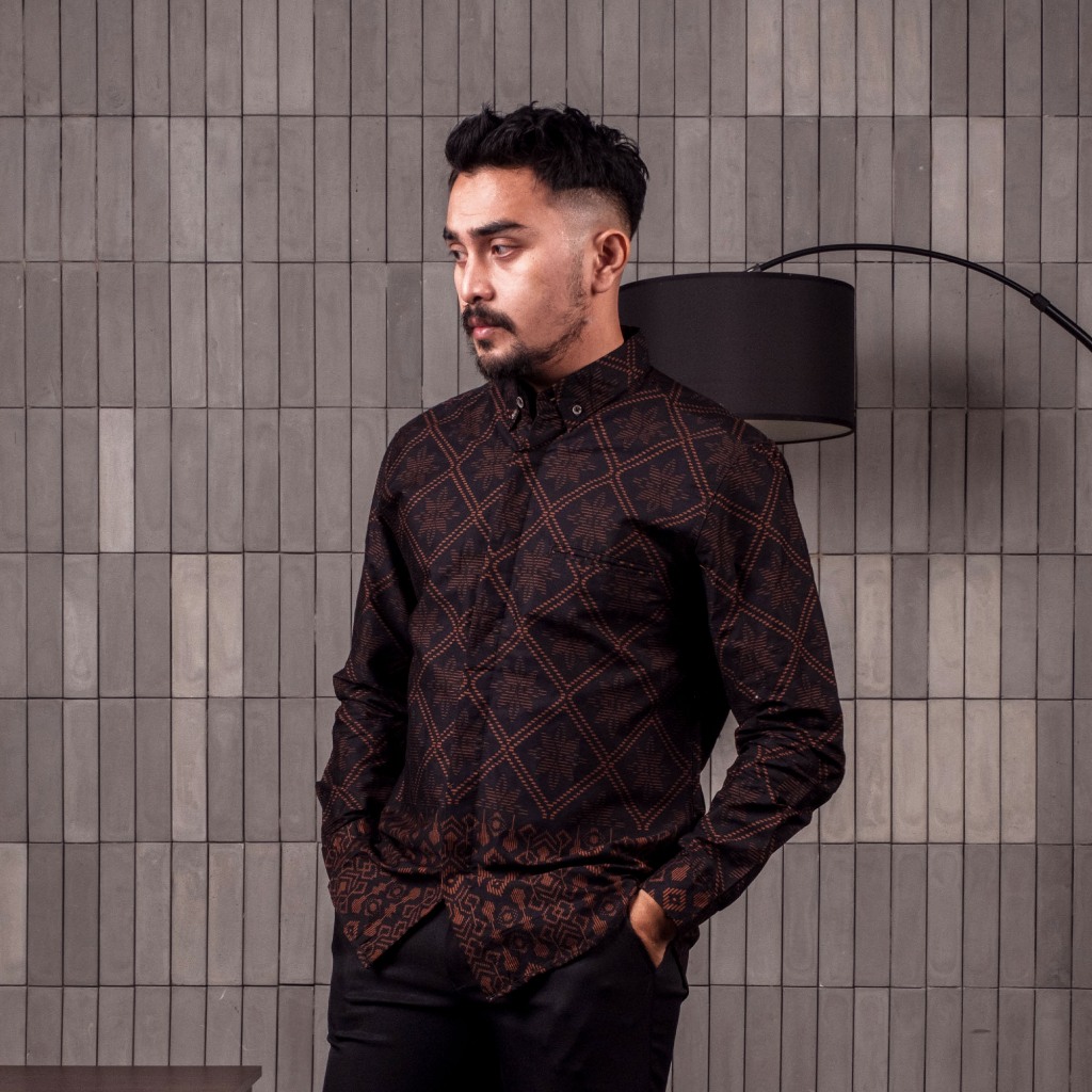 Dgm Kemeja Batik Pria Lengan Panjang Lapis Puring Premium Batik Furing Tribal Hitam - Coklat 2198