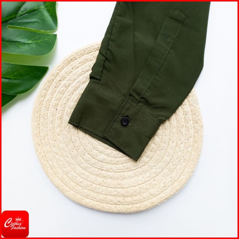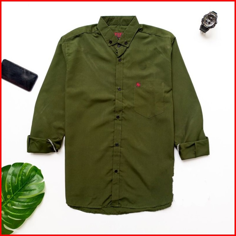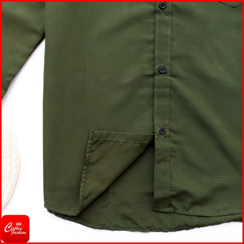 Kemeja Pria Polos Hijau Army Lengan Panjang Formal Kasual Kantoran Boyi Top Man