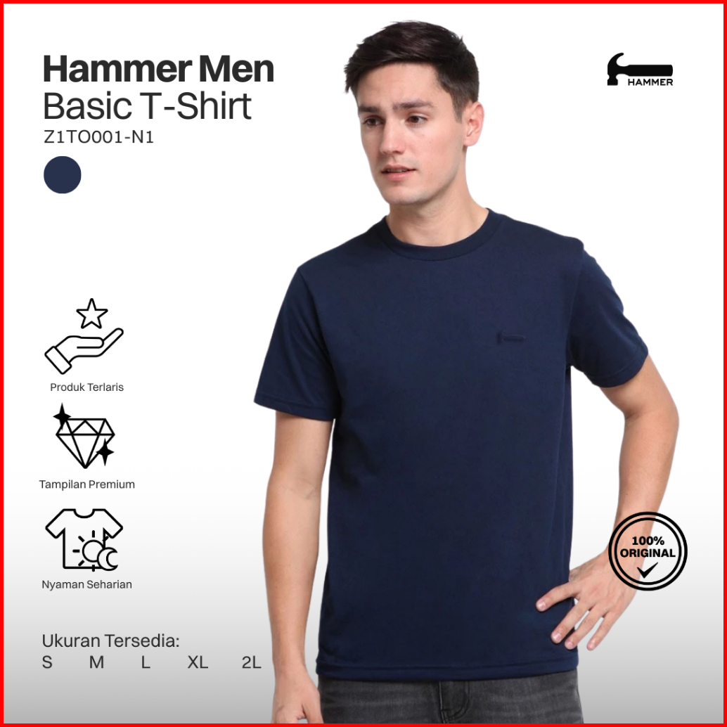 Hammer Men Basic T-shirt Z1to001-n1 Kaos Pria Lengan Pendek Navy