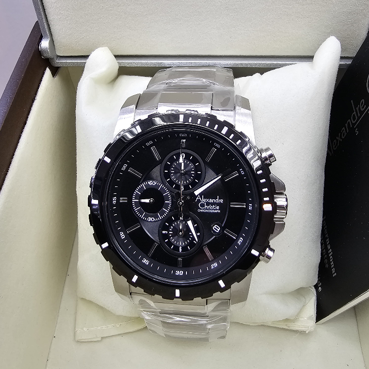 Alexandre Christie AC6141 original Pria Stainless Steel Silver Hitam