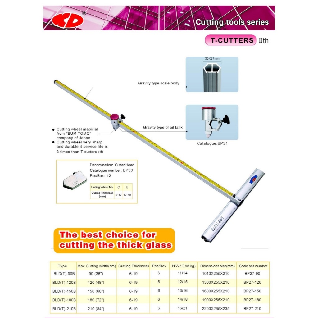 KD BLD(T)-150B Stick Batang Alat Potong Kaca Lurus Glass Cutter Ukuran 150 cm
