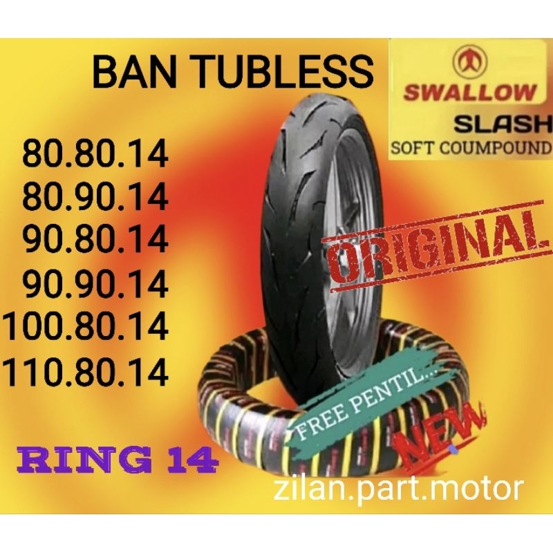 Promo ( Murah Bangeettt ) Ban Tubless Swallow Slash Ring 14 (80/80.14, 80/90.14, 90/80.14, 90/90.14, 100/80.14, 110/