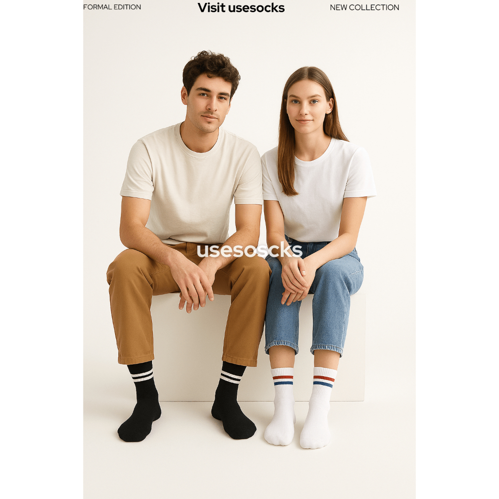 Kaos Kaki Pendek Motif Stripe Dewasa Pria Wanita