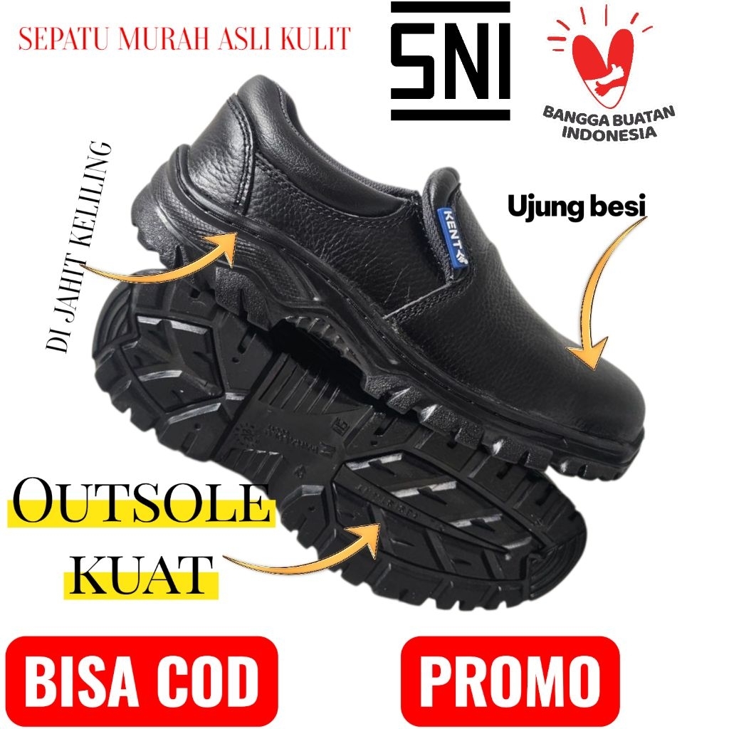 Sepatu Safety Ujung Besi Kent Lokal Murah untuk Pria/wanita model slip on