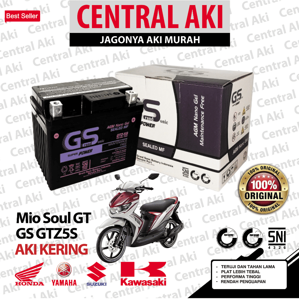 Aki Motor MIO SOUL GT GTZ5S Aki Kering - Free Bubble Dus