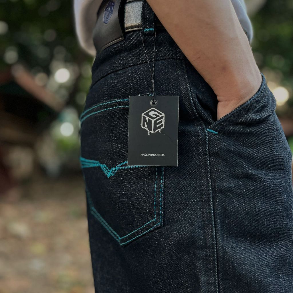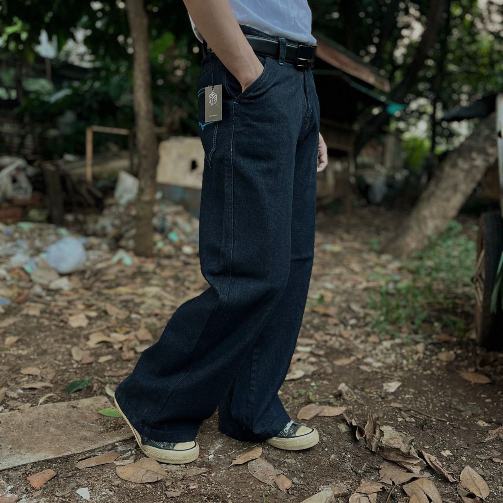 Nge Wideleg Pants Ocean Elektrik Denim 13Oz Celana Gombrong Denim Unisex