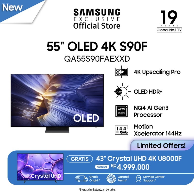 Samsung Smart TV 55" OLED 4K S90F | OLED HDR+ | 4K AI Upscaling | QA55S90FAEXXD