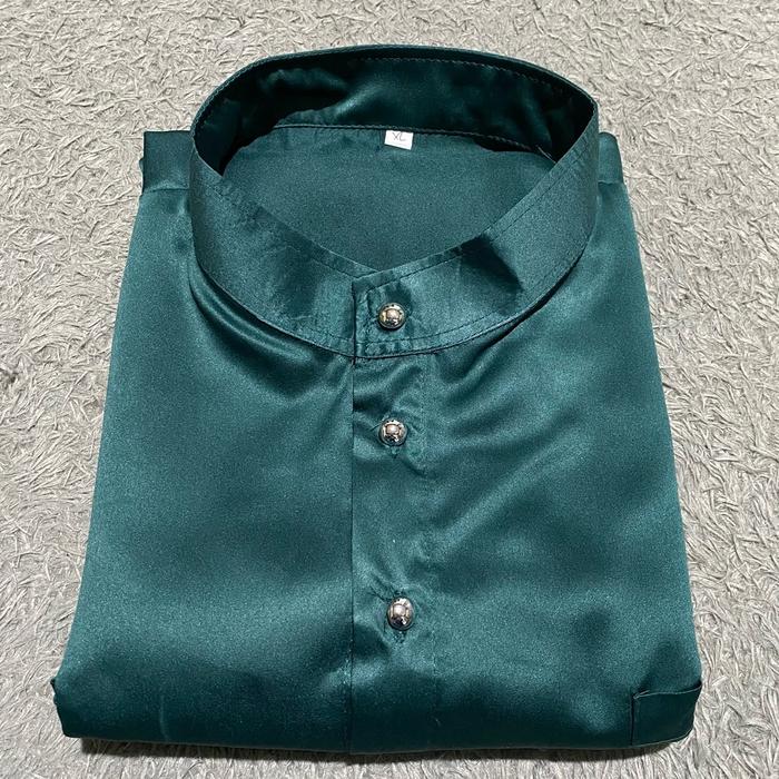 ONE SET BAJU DAN CELANA TELUK BELANGA PRIA MODEL BAJU KOKO BAJU CEKAK DEWASA CELANA TERMURAH TERMEWAH - EMERALD GREEN, M