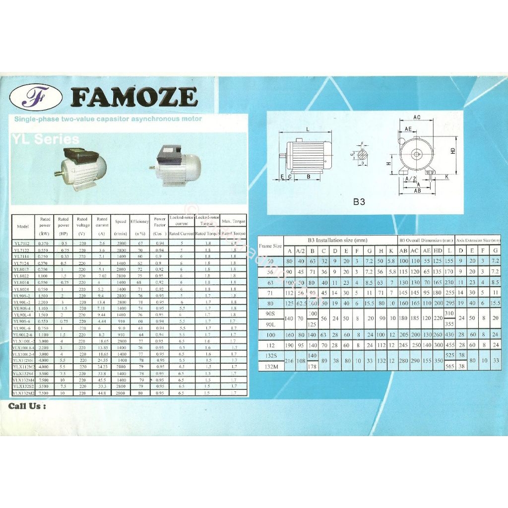 Famoze Pro Dinamo 1 Phase 0.75 HP 2800 RPM 220V 0.55KW Electric Motor GMYL 0,75 PK 3/4 HP Dinamo Penggerak Listrik Kompr