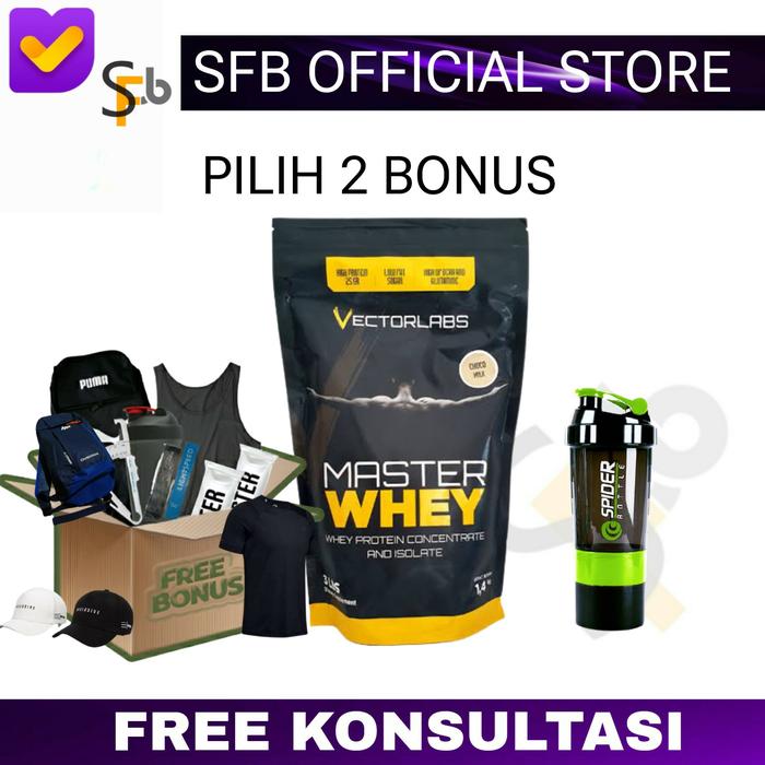 MASTER WHEY VECTORLABS 3 LBS ISOLATE BLEND SUPLEMEN SUSU FITNES FITNES - DARK CHOCO, SHAKER+SHOESBAG