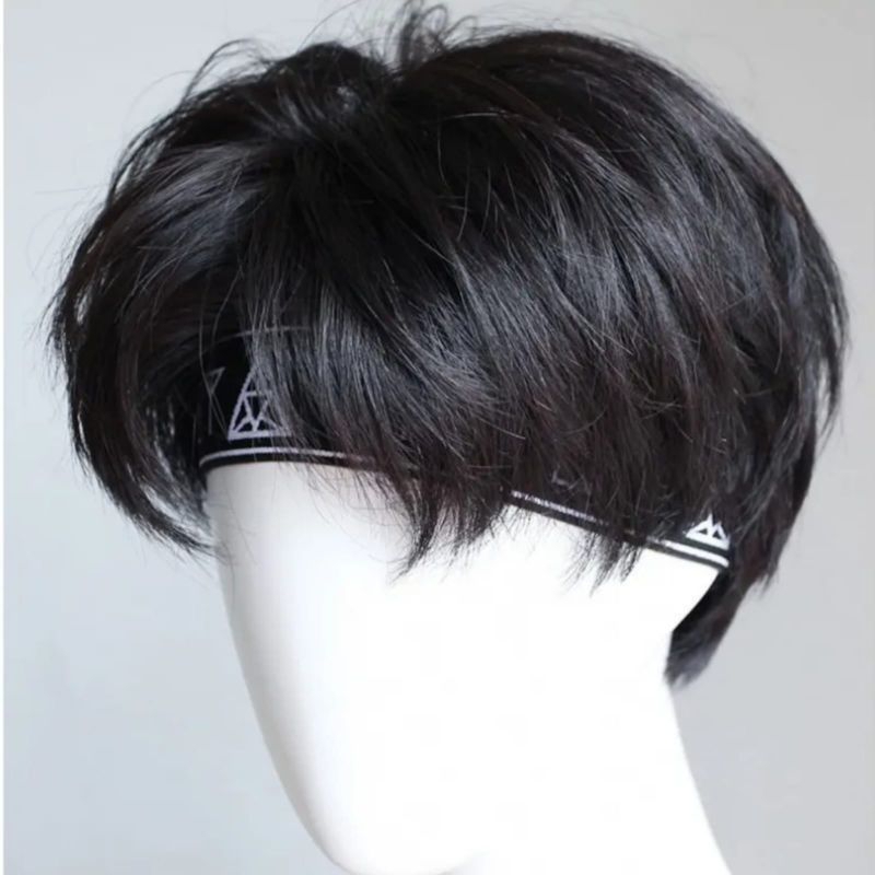 Wig Rambut Pria Pendek Korea Sintetis Tahan Panas