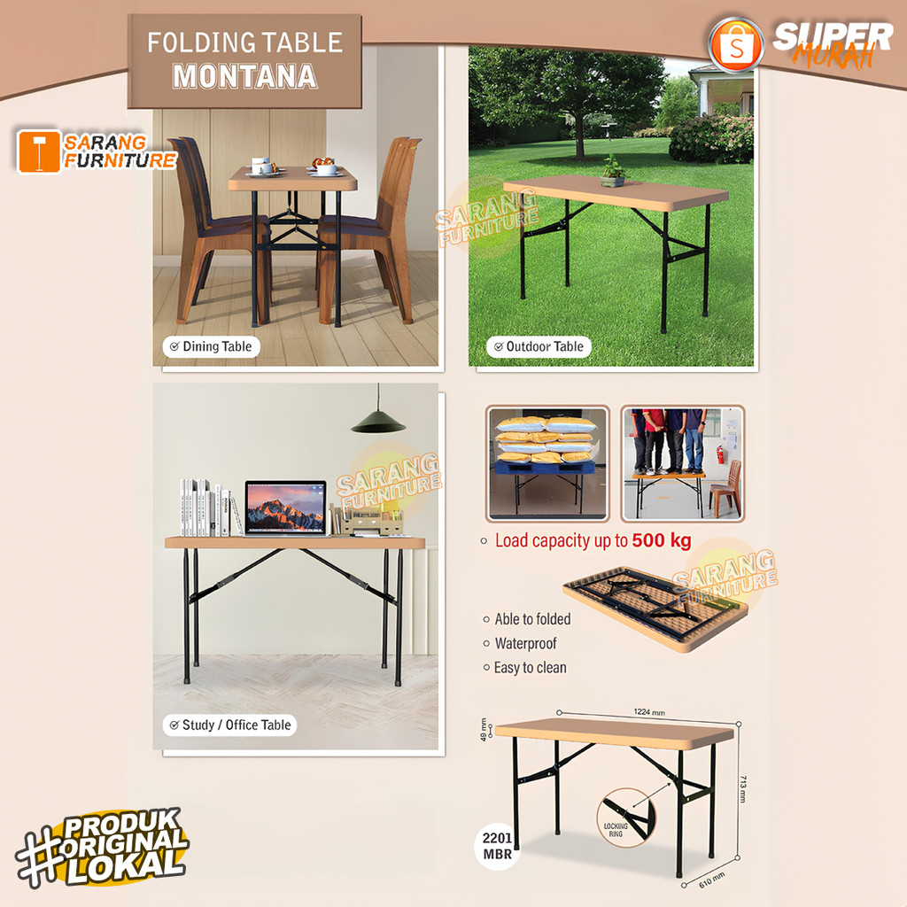 Meja Lipat Nandos Montana Meja Portable Serbaguna Meja Belajar Meja Makan Meja Taman Outdoor Modern