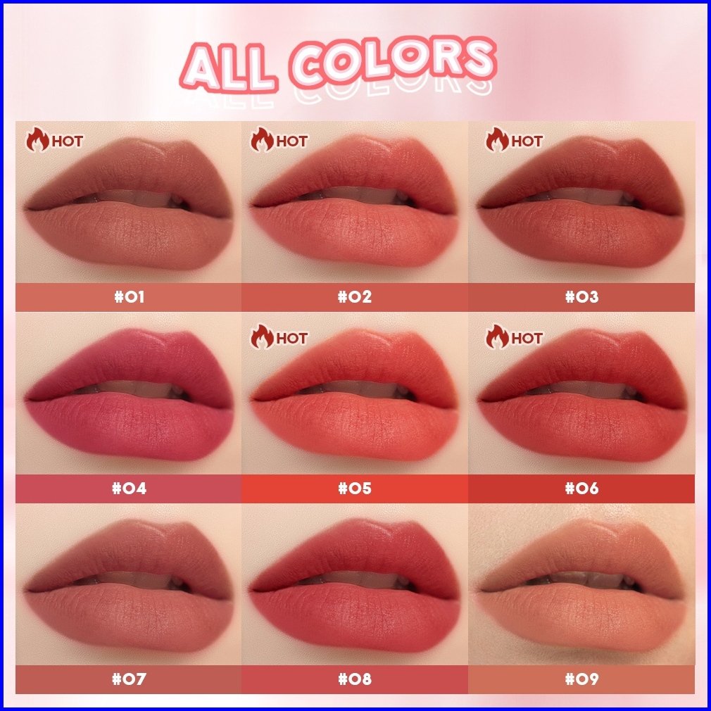 Saniyebpomnew Lipstik 9 Warna Bahan Matte Lip Transparan Lipstick Matte Tahan Lama Waterproof Long Lasting K2000