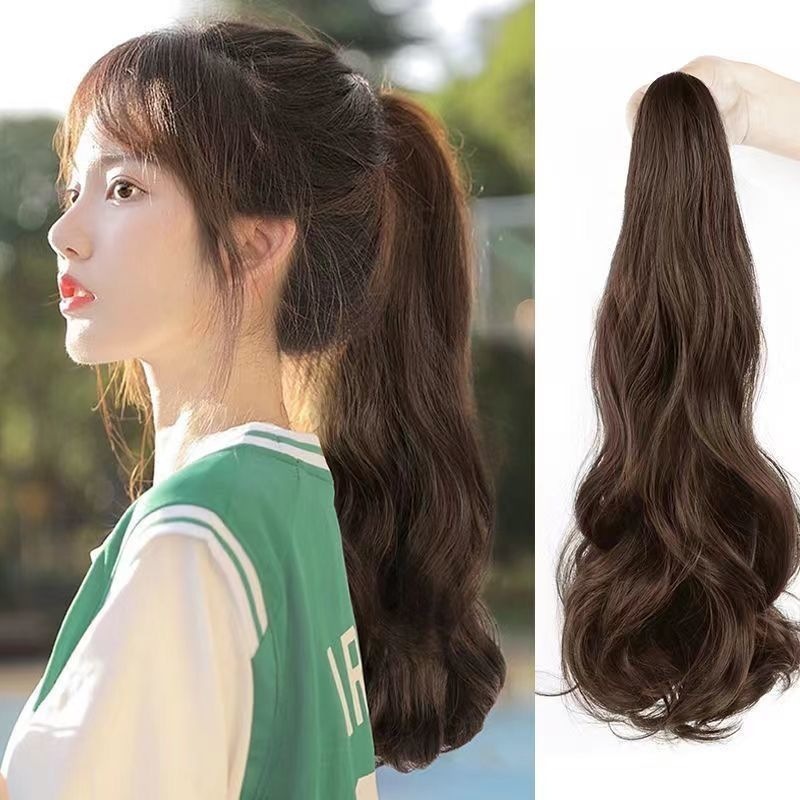 Wig jepit panjang 50 cm bergelombang slim pin ponytail korea wave wavy ombak ponytail jepi Rambut Jepit korea curly pony
