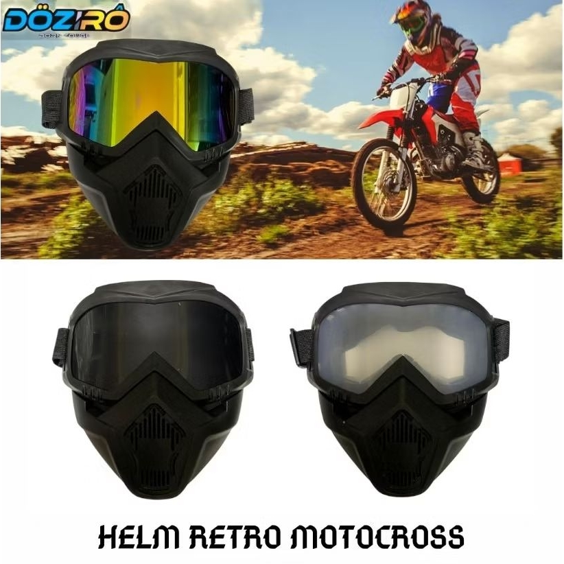 KACAMATA GOGGLE HELM + MASKER / TOPENG FACE SHIELD / UNTUK MOTOR TRAIL ATAU SEPEDA