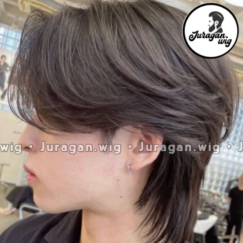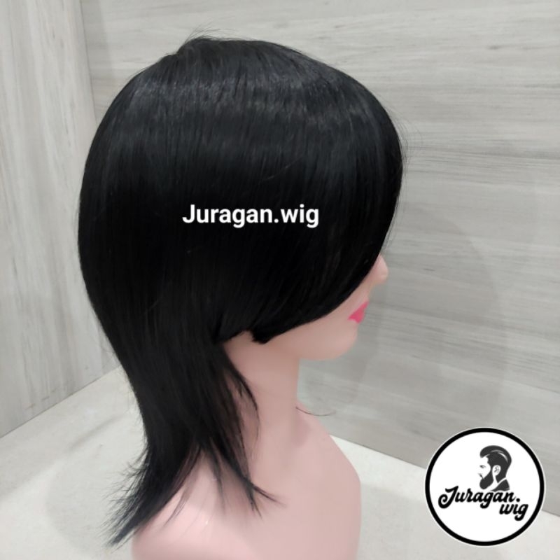 Wig Rambut Pria Mullet Wolfcut Pendek Sintetis Natural